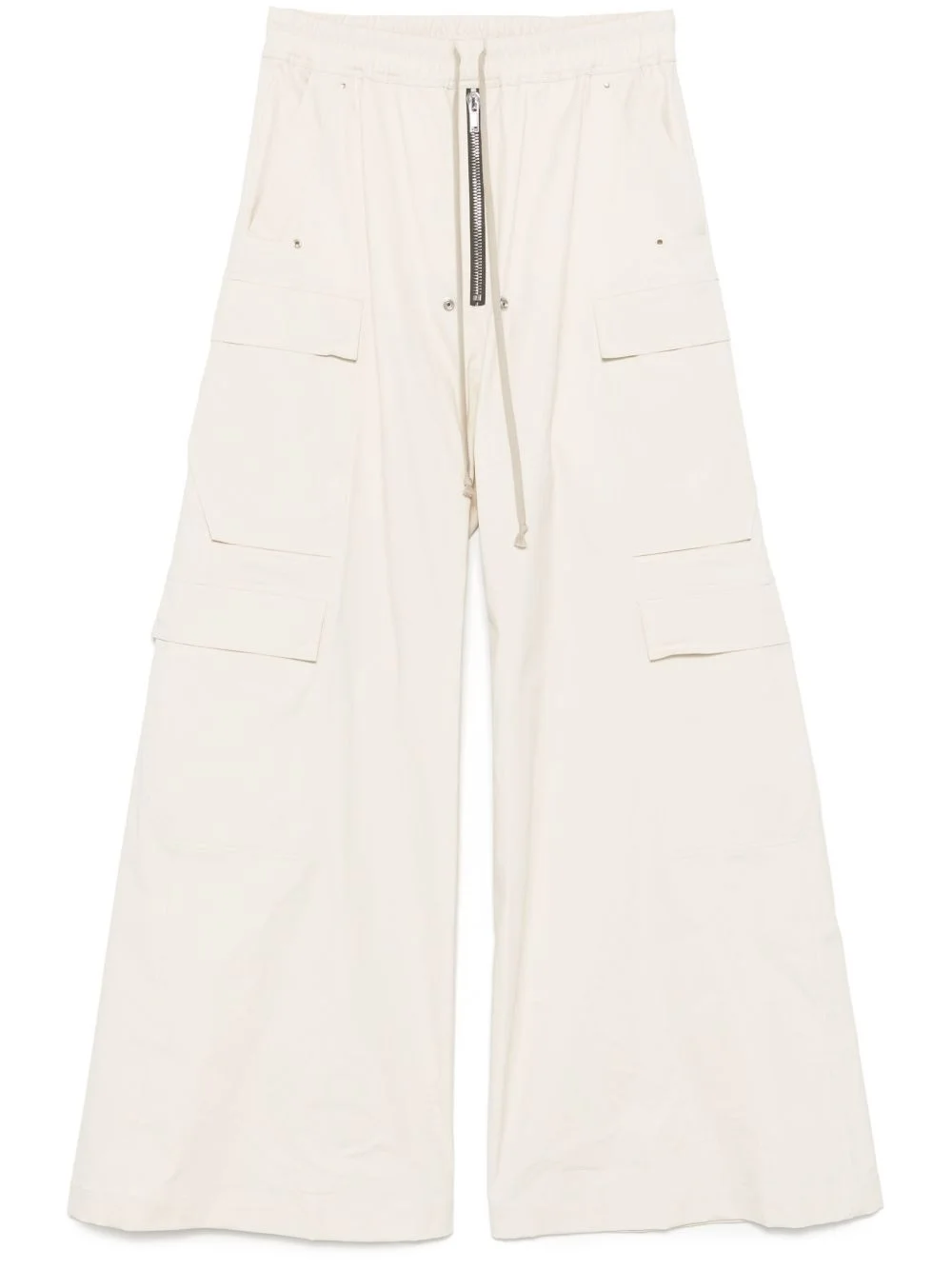Cargobelas trousers Highlights - Light beige - Drawstring fastening - Elasticated waistband - Two side slash pockets - Two rear welt pockets Made in Italy Composition Organic Cotton 97%, Elastane 3% SIZE & FIT Model measurements Height 6 ft 2 in(1.87 m) Bust/Chest 37.79 in(96 cm) Hips 37.79 in(96 cm) Waist 30.31 in(77 cm) FittingInformation Designed with a wide leg, offering a loose and roomy fit The elasticated waist allows for a comfortable fit Made from a midweight stretch fabric, this piece offers elasticity and flexibility when worn