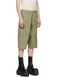 GRS-certified stretch organic cotton poplin shorts. - Drawstring at elasticized waistband - Four-pocket styling - Exposed zip-fly - Rivets and grommets at front - Creased legs - Press-stud hardware at inseam - Cargo pocket at outseams Supplier color: Celadon
