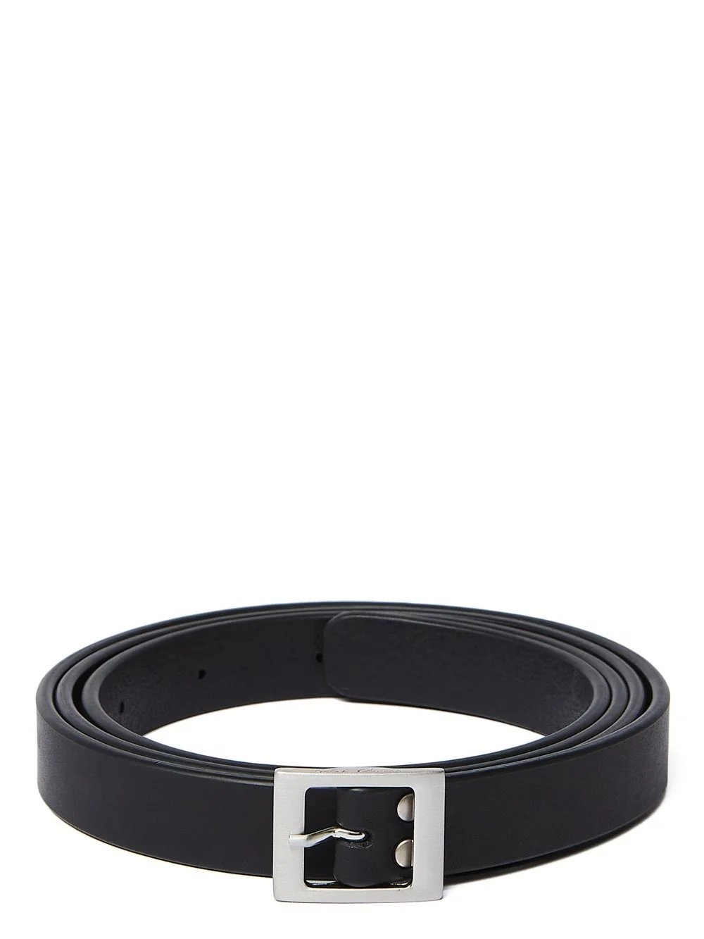RICK OWENS FW25 CONCORDIANS MINI STOOGES BELT IN BLACK GROPPONE COW LEATHER THIS MINI STOOGES BELT IS A THIN, CLASSIC, LONG RECTANGULAR SHAPE WITH A SOLID BRASS PALLADIUM PLATED BUCKLE THIS HEAVYWEIGHT COW LEATHER IS VEG TANNED AND FINISHED USING NATURAL WAXES. BECAUSE THIS SKIN IS NAKED, NOT FINISHED USING ANY PIGMENTS COVERING THE SKIN, NATURAL MARKINGS AND SHADINGS ARE VISIBLE WHICH MAKES EACH SKIN AND PRODUCT UNIQUE VEG TANNING MEANS ONLY VEGETAL AND NATURAL TANNINS WERE USED IN THE PROCESS OF TANNING AND PRESERVING THIS LEATHER THIS TANNERY IS LWG CERTIFIED WITH A GOLD RATING COLOR: BLACK MATERIAL: 100% BULL LEATHER BUCKLE 100% ALUMINIUM IT MEASURES 133CM X 2CM X 0,5CM
