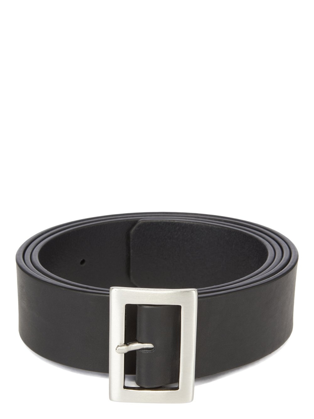 RICK OWENS FW24 PORTERVILLE STOOGES BELT IN BLACK GROPPONE COW LEATHER THIS STOOGES BELT IS A CLASSIC LONG RECTANGULAR SHAPE, WITH A SOLID BRASS PALLADIUM PLATED BUCKLE. THIS HEAVYWEIGHT COW LEATHER IS VEG TANNED AND FINISHED USING NATURAL WAXES. BECAUSE THIS SKIN IS NAKED, NOT FINISHED USING ANY PIGMENTS COVERING THE SKIN, NATURAL MARKINGS AND SHADINGS ARE VISIBLE WHICH MAKES EACH SKIN AND PRODUCT UNIQUE. VEG TANNING MEANS ONLY VEGETAL AND NATURAL TANNINS WERE USED IN THE PROCESS OF TANNING AND PRESERVING THIS LEATHER. THIS TANNERY IS LWG CERTIFIED WITH A GOLD RATING. - COLOR: BLACK - MATERIAL: 100% BULL LEATHER - BUCKLE 100% ALUMINIUM - MEASUREMENT: WIDTH 4CM / LENGTH 130,5CM / DEPTH 0,5CM