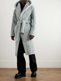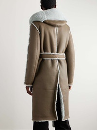 Playing with touch and colour, Rick Owens' two-tone, two-texture coat is crafted from shearling, which has been specially tanned in Tuscany. Play with the styling by wearing it with the belt undone and hanging by the sides. Size & Fit - Fits true to size. Take your normal size - Designed for a slightly loose fit; use the belt to secure at the waist - Structured, non-stretchy shearling - Model is shown wearing an IT 48 - Model measures: chest 38"/ 96cm, height 6'2"/ 188cm Details & Care - Brown and light-blue shearling - Ties at front - 100% shearling (Lamb) - Specialist clean