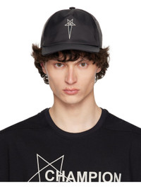 Nylon satin cap in black. · Embroidered eyelets at crown · Embroidered logo patch at face · Curved brim · Cinch fastening at back · Grosgrain browband · Plain-woven lining Part of the Rick Owens x Champion collaboration. Supplier color: Black 100% nylon. Made in Italy 252232M139000