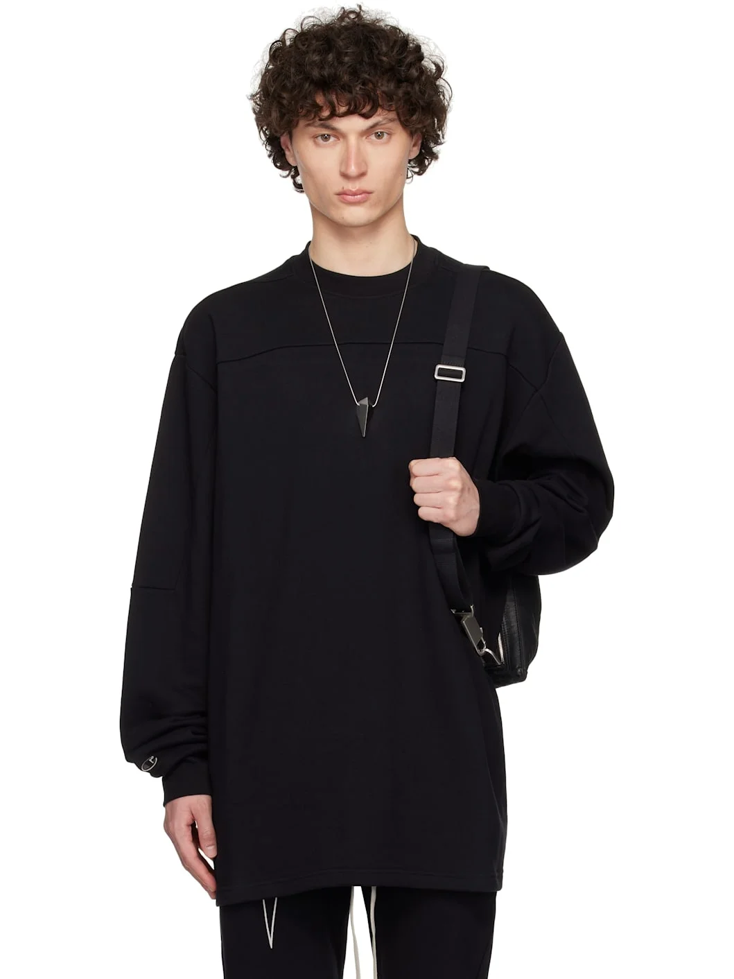 GOTS-certified organic cotton French terry sweatshirt. · Rib-knit crewneck and cuffs · Yoke sleeves · Embroidered logo patch at cuff · Central seam at back Part of the Rick Owens x Champion collaboration. Supplier color: Black Body: 100% organic cotton. Trim: 96% cotton, 4% elastane. Made in Italy 252232M204001