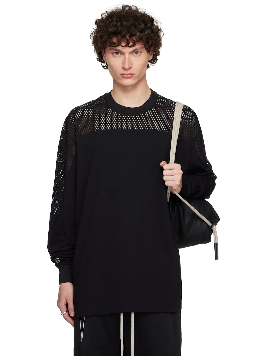 GOTS-certified organic cotton mesh and jersey T-shirt. · Rib-knit crewneck and cuffs · Yoke sleeves · Embroidered logo patch at cuff · Central seam at back Part of the Rick Owens x Champion collaboration. Supplier color: Black Body: 100% organic cotton. Trim: 95% cotton, 5% elastane. Made in Italy 252232M213008