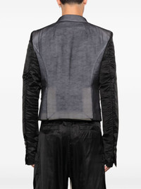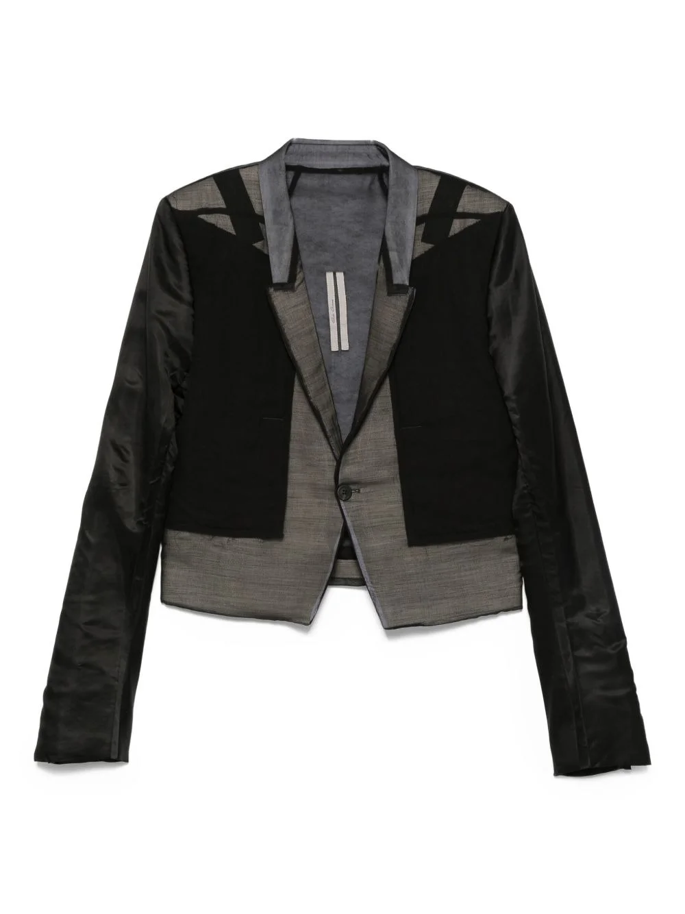 silk panelled jacket Highlights - Black - Silk - Single button fastening - Notched lapels - Cropped hem - Long sleeves Made in Italy Composition Outer: Silk 100%, Cupro 100% Lining: Organic Cotton 100% SIZE & FIT Model measurements Height 6 ft 1 in(1.85 m) Bust/Chest 35.82 in(91 cm) Hips 37.79 in(96 cm) Waist 29.13 in(74 cm) Washing instructions Dry Clean Only