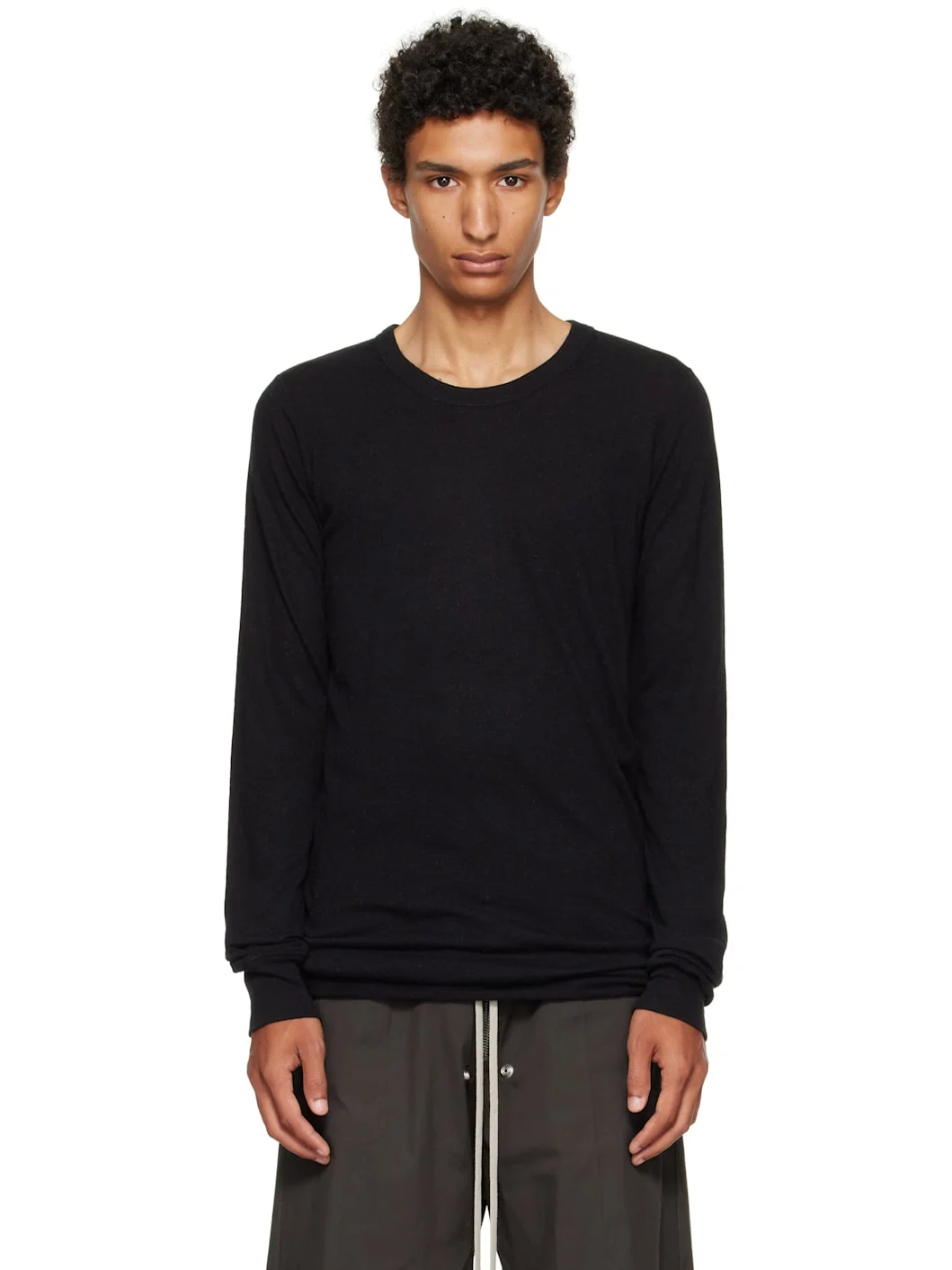 Nylon- and viscose-blend jersey T-shirt. · FSC®- and RWS-certified · Rib-knit crewneck and cuffs · Raw edge at hem · Central seam at back Supplier color: Black 30% polyamide, 30% viscose, 20% angora, 20% wool. Made in Italy 252232M213061