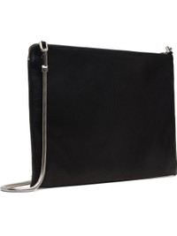 LWG-certified grained lambskin messenger bag. · Detachable snake chain crossbody strap · Embossed logo and D-ring at face · Topstitching at back face · Zip closure · Unlined · H11.5" x W15.5" x D0.5" Supplier color: Black Lambskin. Made in Italy 252232M170040