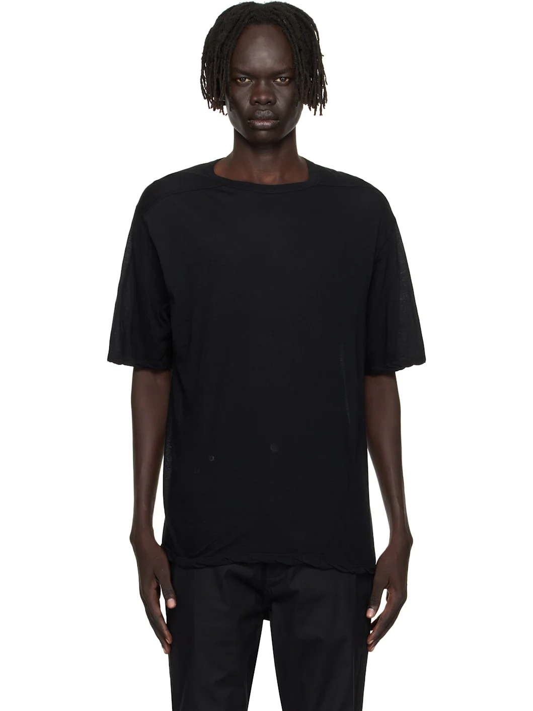 Semi-sheer organic cotton jersey T-shirt. · GOTS-certified organic cotton · Rib-knit crewneck · Twisted side seams · Offset seam at shoulders Supplier color: Black 100% organic cotton. Made in Italy 252232M213048