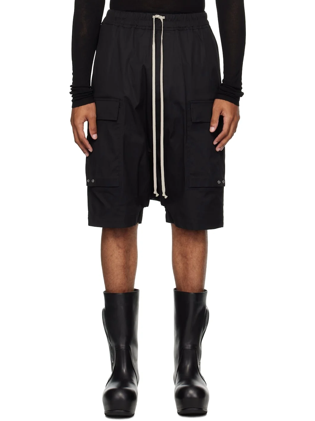 Stretch GOTS-certified organic cotton poplin shorts. · Drawstring at elasticized waistband · Four-pocket styling · Cargo pocket at legs · Dropped inseam · Horn hardware Supplier color: Black 97% organic cotton, 3% elastane. Made in Italy 252232M193016