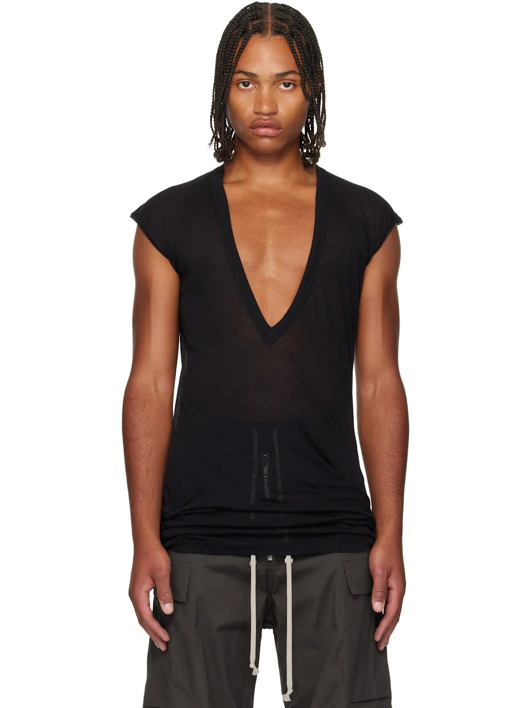 Lightweight organic cotton jersey T-shirt. · GOTS-certified organic cotton · Rib-knit plunging V-neck · Cap sleeves Supplier color: Black 100% cotton. Made in Italy 252232M213077