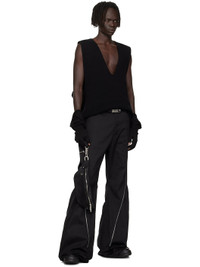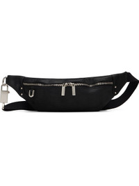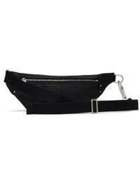 Blistered lambskin pouch. · Adjustable and semi-detachable belt-style strap · D-ring and embossed logo at face · Zip pocket at back face · Two-way zip closure · Patch pocket at interior · Logo-engraved silver-tone hardware · H5" x W11" x D1.5" Supplier color: Black Lambskin. Made in Italy 252232M171006