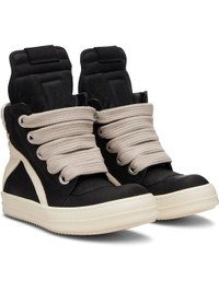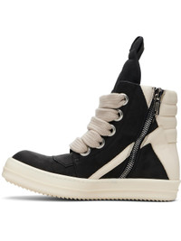 High-top LWG-certified suede sneakers. · Perforations at toe · Lace-up closure · Pull-loop at extended padded tongue · Padded collar · Zip closure at inner side · Buffed calfskin lining · Treaded rubber sole Supplier color: Black/Milk/Milk Upper: leather. Sole: rubber. Made in Italy 252232M236014