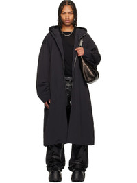 Nylon taffeta coat. · Zip closure extends to hood · Seam pockets at waist · Dropped shoulders · Riveted webbing strap at back · Central vent at back hem · Zip pockets at interior · Fully lined Supplier color: Black Body: 100% polyamide. Fill: 100% polyester. Lining 1: 100% cotton. Lining 2: 100% cupro. Made in Italy 252232M176009