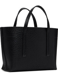 Grained bison leather tote. · Fixed carry handles · Logo embossed at face · Patch pockets and zip pocket at interior · Contrast stitching in white · H7.5" x W12" x D4.5" Supplier color: Black Bison leather. Made in Italy 252232M172010