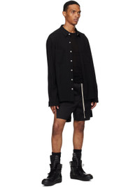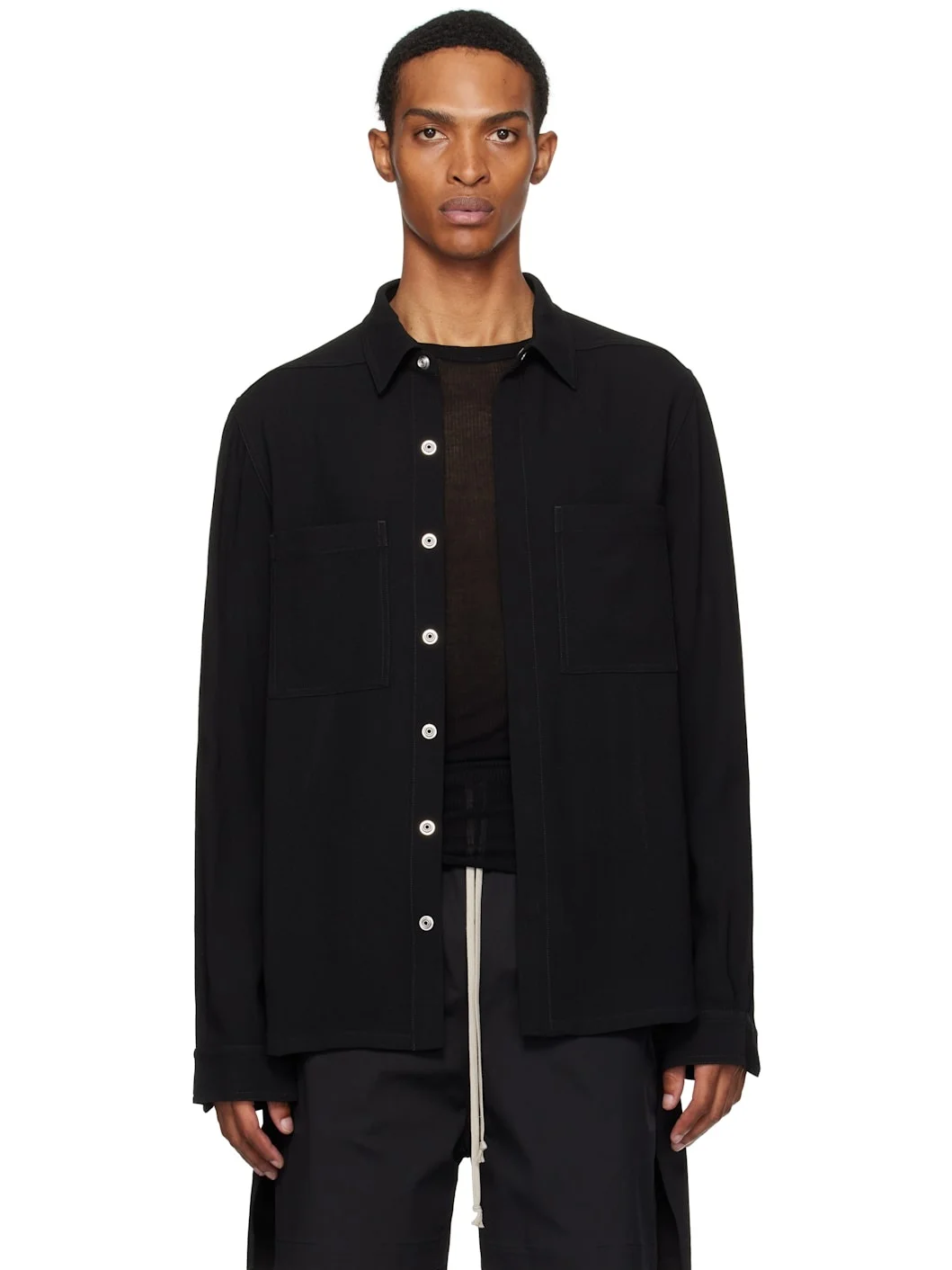 Virgin wool crepe shirt. · Spread collar · Press-stud closure · Patch pockets at chest · Shirttail hem · Press-stud barrel cuffs · Fixed webbing strap at back yoke Supplier color: Black 100% virgin wool. Made in Italy 252232M192012