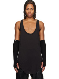 Lightweight virgin wool- and silk-blend jersey tank top. · RWS-certified wool · Rib-knit scoop neck and armscyes · Raw edge at curved hem · Racer back Supplier color: Black 70% virgin wool, 30% silk. Made in Italy 252232M214041