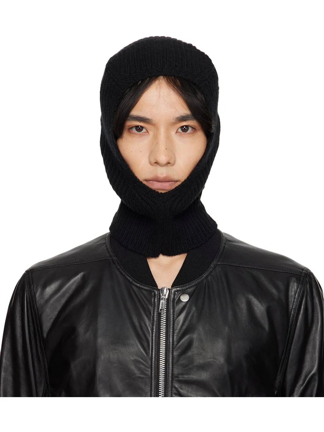 Rib-knit virgin wool balaclava. · Lightweight · Cutout at face · Rib-knit trim at cutout and collar Face masks and face coverings are final sale and are not eligible for return or exchange. Supplier color: Black 100% virgin wool. Made in Italy 252232M138006