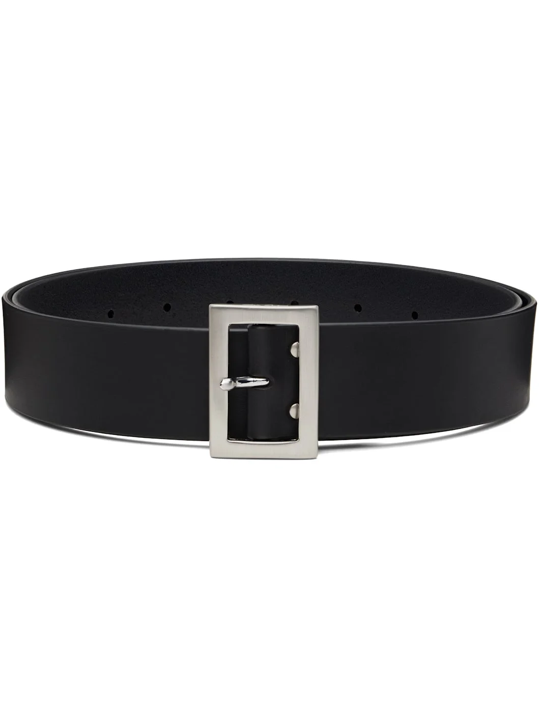 Waxed and vegetable-tanned grained bull leather belt. · LWG-certified leather · Logo-engraved pin-buckle fastening · Silver-tone hardware · W1.5" Supplier color: Black Bull leather. Made in Italy 252232M131004
