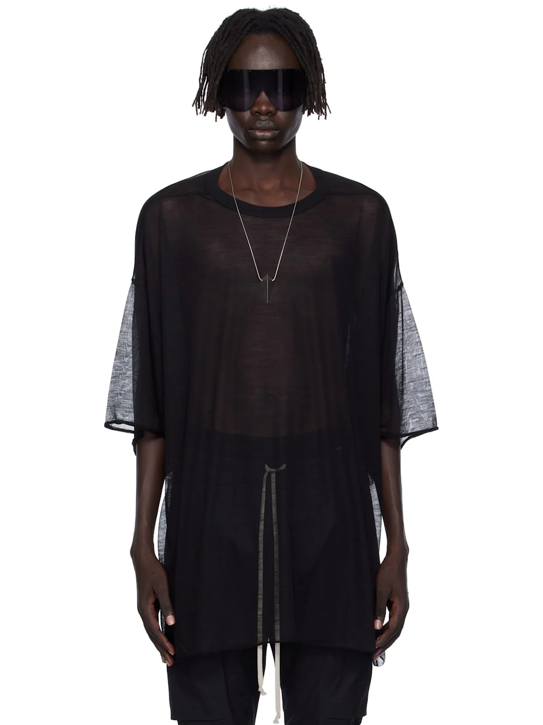 Semi-sheer wool- and recycled polyester-blend jersey T-shirt. · RWS-certified wool · GRS-certified recycled polyester · Crewneck · Raw edge at hem and cuffs · Saddle shoulders Supplier color: Black 56% wool, 44% recycled polyester. Made in Italy 252232M213029
