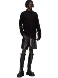 Organic cotton- and linen-blend corduroy shirt. · GOTS-certified organic cotton · Spread collar · Concealed button closure · Patch pockets at chest · Shirttail hem · Buttoned barrel cuffs · Buffalo horn hardware Supplier color: Black 74% organic cotton, 26% linen. Made in Italy 252232M192029