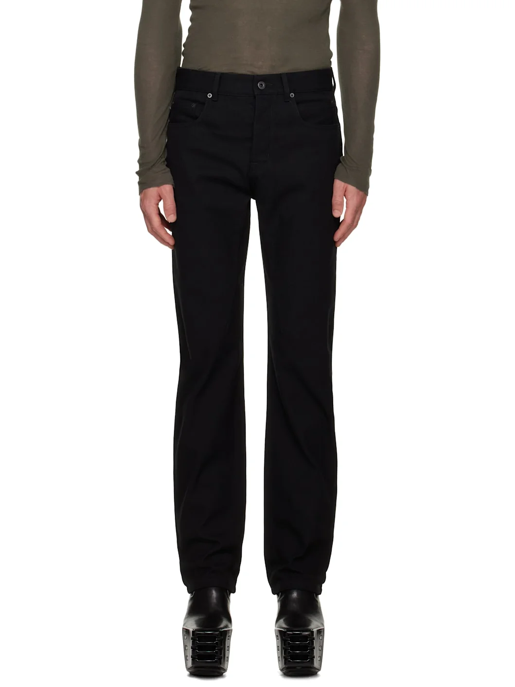 Non-stretch denim jeans. · Belt loops · Six-pocket styling · Button fly · Darts at inseam Supplier color: Black 100% cotton. Made in Italy 252232M186015