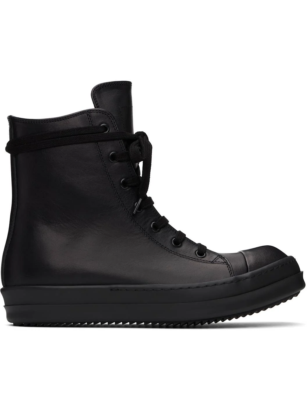 High-top grained leather sneakers in black. · LWG-certified leather · Calfskin cap toe · Lace-up closure · Extended tongue · Eyelets and zip closure at inner side · Grained calfskin lining · Treaded rubber sole Supplier color: Black/Black/Black Upper: leather. Sole: rubber. Made in Italy 251232M236071