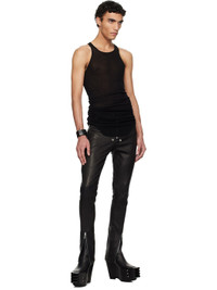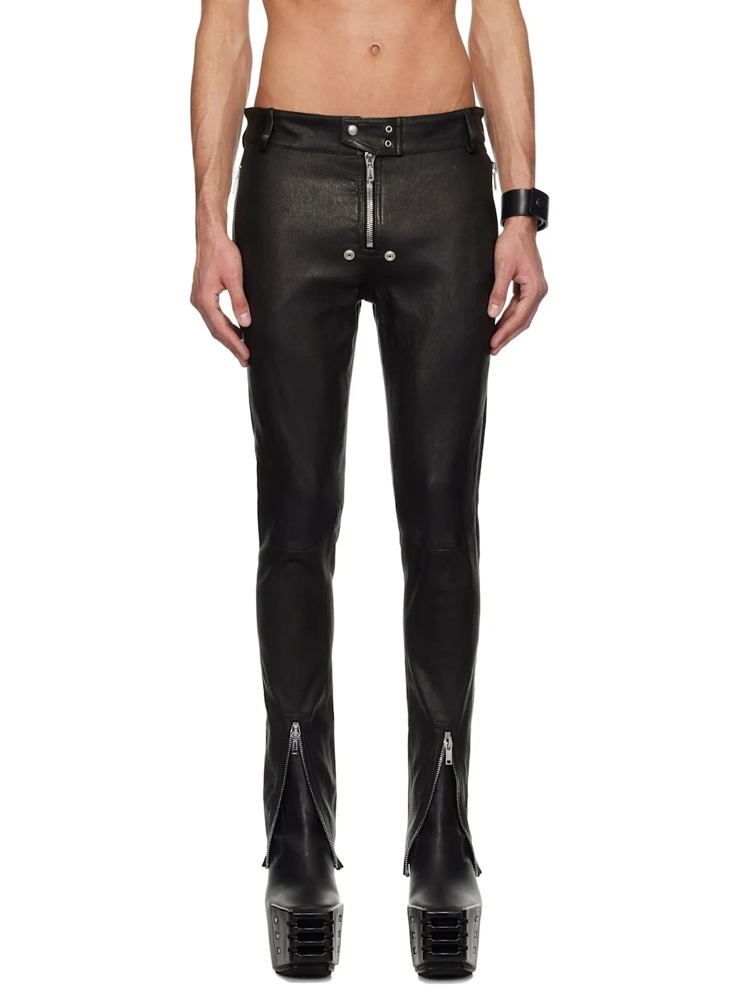 Buffed vegetable-tanned lambskin pants. · Belt loops · Press-stud tab at waistband · Two-pocket styling · Exposed zip fly · Press-stud hardware at fly · Zip vent at cuffs and back · Full bonded stretch cotton lining Supplier color: Black 65% lamb leather, 34% cotton, 1% lycra. Made in Moldova 251232M189007