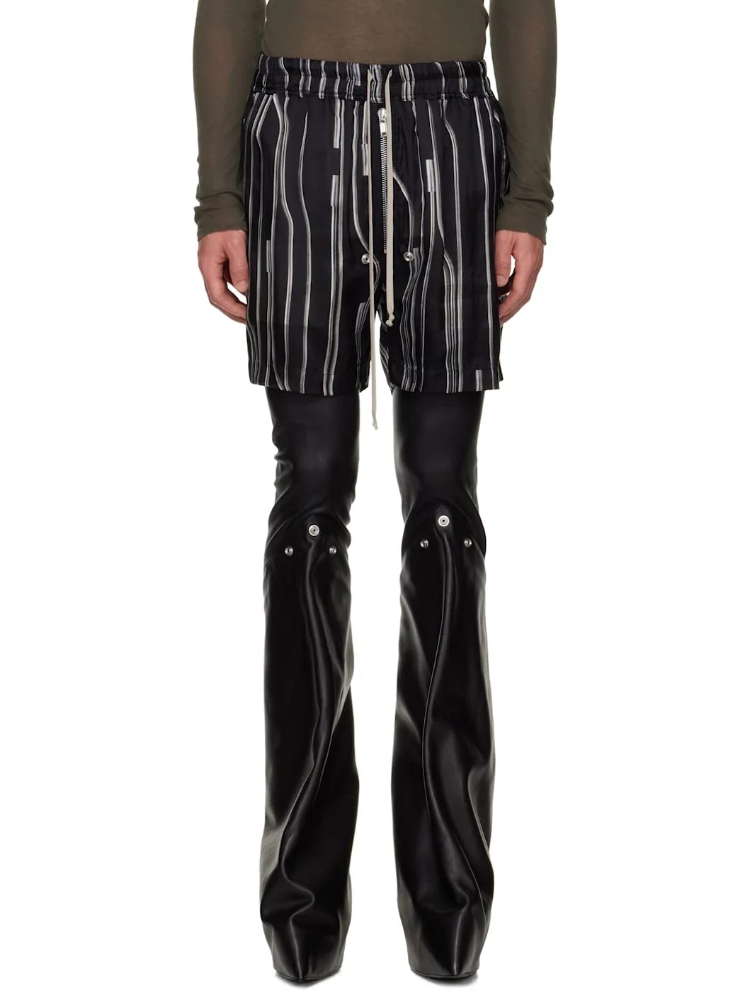 Semi-sheer cupro satin shorts. · Graphic pattern throughout · Drawstring at elasticized waistband · Two-pocket styling · Exposed zip fly · Hardware at front · Vented cuffs Supplier color: Black/Pearl 100% cupro. Made in Italy 252232M193021