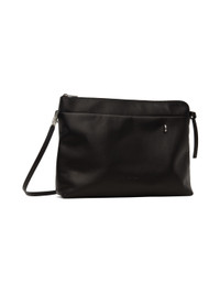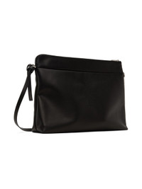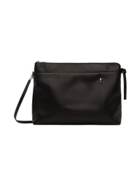 LWG-certified grained calfskin messenger bag in black. · Adjustable and detachable crossbody strap · Embossed logo and D-ring at face · Zip closure · Patch pocket at interior · Unlined · Logo-engraved silver-tone hardware · H11" x W15.75" x D4" Supplier color: Black