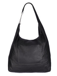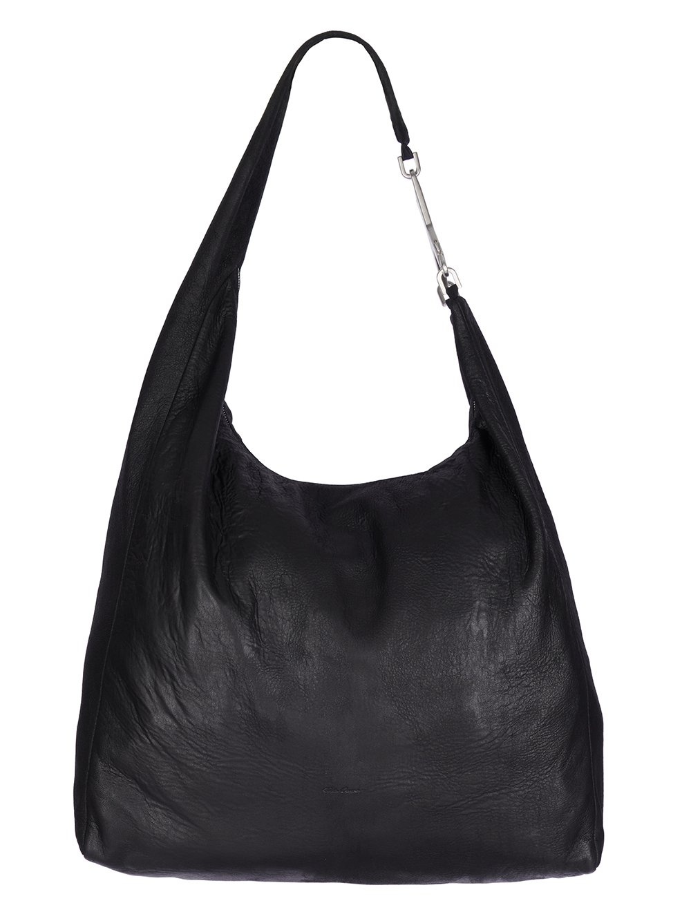 RICK OWENS FW24 PORTERVILLE CERBERUS BAG IN BLACK BLISTER LAMB LEATHER THIS CERBERUS BAG IS A LARGE SOFT A-SHAPED BAG THAT SLOUCHES IN THE MIDDLE. IT CURVES OVER TO CREATE A STRAP THAT SECURES WITH A CERBERUS TRIPLE-SIDED SNAP HOOK ENGRAVED WITH THE RICK OWENS LOGO. THE BAG OPENS WITH A TOP ZIPPER, HAS AN INNER POUCH POCKET AND A FLAT, ZIPPERED, POCKET WITH SIGNATURE U-SHAPED STITCHING DETAIL VISIBLE ON THE REAR EXTERIOR THIS LIGHTWEIGHT LAMB LEATHER HAS AN EXAGGERATED UNEVEN BLISTERED TEXTURE AND A SOFT, FLUID HANDFEEL. THE BLISTERED TEXTURE IS ACHIEVED BY EXAGGERATION THE NATURAL GRAIN TEXTURE OF EACH SKIN, THEREFORE THE LOOK OF EACH SKIN IS UNIQUE. - COLOR: BLACK - MATERIAL: 100% LAMB LEATHER - MEASUREMENT: WIDTH 46CM / HEIGHT 77CM / DEPTH 12CM