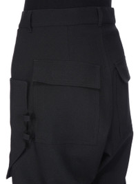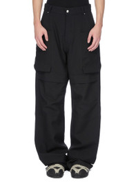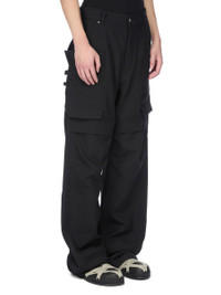 RICK OWENS FW25 CONCORDIANS STEFAN CARGO IN BLACK GRAIN DE POUDRE THIS STEFAN CARGO IS A FULL LENGTH 5 POCKET JEAN WITH A LOW-RISE AND A LOOSE FIT. THEY HAVE A SILVER BUTTON FLY, BELT LOOPS AND POCKET RIVETS. THEY FEATURE SIDE WELT POCKETS WITH RIVETS, OVERLAYED WITH POCKETS WITH SQUARE CORNERS AND A BEVELED BOTTOM ON THE FRONT THIGHS WITH LOOPS. AS WELL AS LARGE KNEE PATCH POCKETS WITH FLAPS AND REAR POCKETS WITH FLAPS AND SCRATCH CLOSURES. THIS MEDIUMWEIGHT WOOL GRAIN DE POUDRE FABRIC HAS A ROUND AND SOFT HANDFEEL. THIS FABRIC IS MADE FROM RWS CERTIFIED VIRGIN WOOL WHICH ENSURES A HIGH STANDARD IN ANIMAL WELFARE, ENVIRONMENTAL SUSTAINABILITY AND SOCIAL RESPONSIBILITY. EACH BALE OF WOOL IS TRACEABLE BACK TO ITS SOURCE. COLOR: BLACK MATERIAL: 100% NEW WOOL MODEL IS 189CM TALL MODEL WEARS SIZE 31