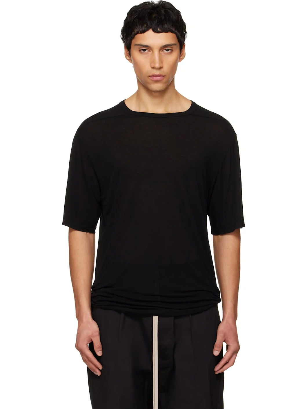 Viscose- and silk-blend jersey T-shirt. · Rib-knit crewneck · Offset shoulder seams · Central seam at back Supplier color: Black 88% viscose, 12% silk. Made in Italy 261232M213050