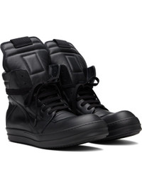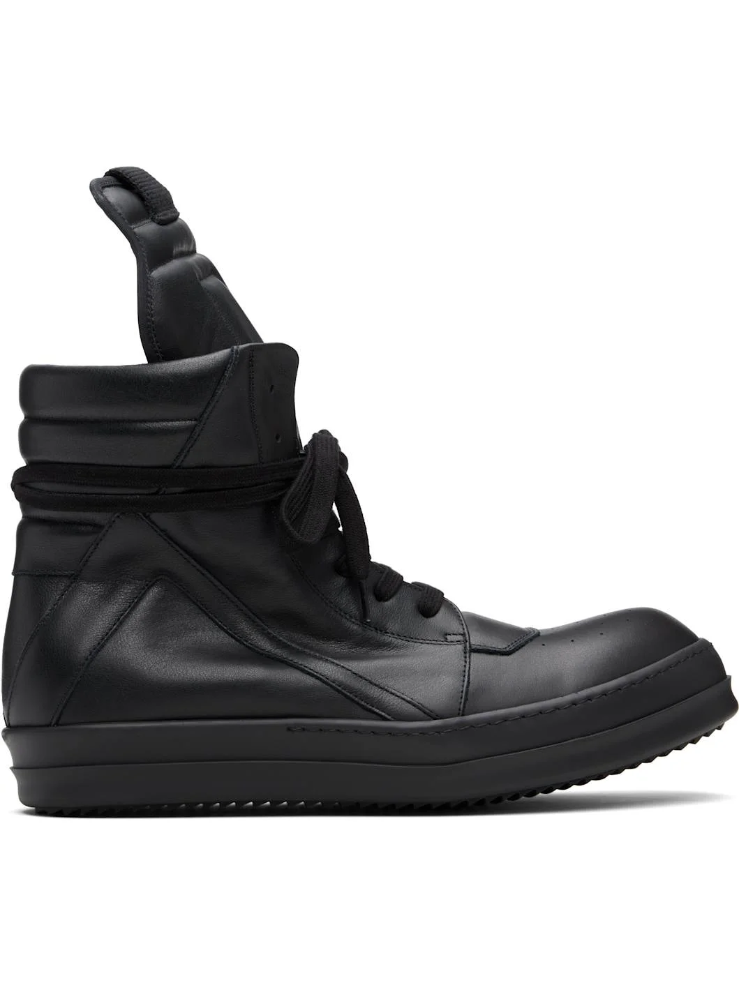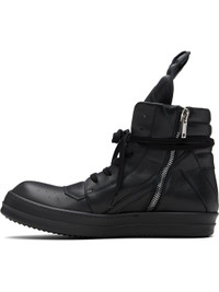 High-top buffed leather sneakers. · Perforations at toe · Lace-up closure · Webbing pull-loop at extended padded tongue · Quilted padded collar · Zip closure at inner side · Treaded rubber sole Supplier color: Black/Black/Black Upper: leather. Sole: rubber. Made in Italy 261232M236058