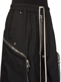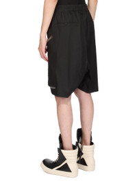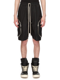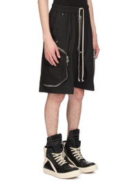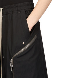 RICK OWENS SS26 TEMPLE HEIZER BELA IN BLACK HEAVY POPLIN THESE HEIZER BELA ARE BELOW-KNEE LENGTH SHORTS WITH A LOW, DROPPED CROTCH. THEY HAVE AN ELASTICIZED WAISTBAND WITH DRAWSTRING, A BELA EXPOSED CENTER ZIPPER WITH TWO SNAP DETAIL, AT BOTTOM. THEY FEATURE HEIZER, TWO-WAY ZIPPERED POCKETS ON EACH THIGH, AND HAVE SIDE WELT POCKETS WITH EYELET AND RIVET DETAIL AND BACK POCKETS WITH CONCEALED SNAPS. THIS MEDIUMWEIGHT COTTON POPLIN HAS A CRISP HANDFEEL AND WASHED FINISH. THIS FABRIC IS MADE USING GOTS CERTIFIED ORGANIC COTTON WHICH MEANS THE NATURAL FIBRE IS GROWN WITHOUT HARMFUL CHEMICALS, LEAVING OUR SOIL, AIR AND WATER CLEANER FROM CONTAMINATES. COLOR: BLACK MATERIAL: 97% COTTON + 3% ELASTANE MODEL IS 189CM TALL MODEL WEARS SIZE 48