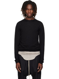 Lightweight knit wool sweater. · Rib-knit crewneck, hem, and cuffs · Offset seam at shoulders · Central knit stripe at back Supplier color: Black 100% wool. Made in Italy 261232M201030