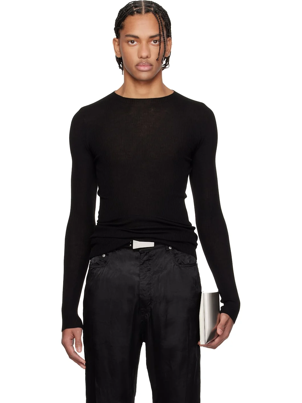 Black Temple Ribbed Round Neck Sweater