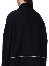 RICK OWENS FW25 CONCORDIANS RUNWAY HEIZER JUMBO MAC IN BLACK MELTON THIS HEIZER JUMBO MAC IS BELOW KNEE LENGTH WITH LONG SLEEVES AND A SQUARE FIT. IT HAS A CLASSIC COLLAR AND A CENTRE ZIPPER OPENING, BLIXA TWO-WAY ZIPPERED CHEST POCKETS AND TWO LOWER FLAP POCKETS ON FRONT AS WELL AS THE HARNESS DETAIL ON FRONT CHEST. IT FEATURES THE IT FEATURES A ZIP HEM, ALLOWING PIECES TO BE CONVERTED INTO LONGER OR SHORTER GARMENTS. THIS HEIZER JUMBO MAC IS COAT LENGTH BUT CAN BE UNZIPPED INTO A CROPPED PIECE. THE ZIPS CAN ALSO BE PARTIALLY UNDONE, ALLOWING THE BOTTOM HALF TO DRAPE BEHIND. IT HAS A CENTRE BACK VENT. IT IS FULLY LINED WITH TWO INTERNAL ZIPPERED POCKETS. THIS VERSION HAS CONTRAST LEATHER TOP AND VIRGIN WOOL LOWER HALF. THIS HEAVYWEIGHT AND COMPACT WOOL MELTON HAS A FLAT, MATTE FINISH AND A SOFT HANDFEEL. COLOR: BLACK MATERIAL:100% NEW WOOL MODEL IS 189CM TALL MODEL WEARS SIZE 48