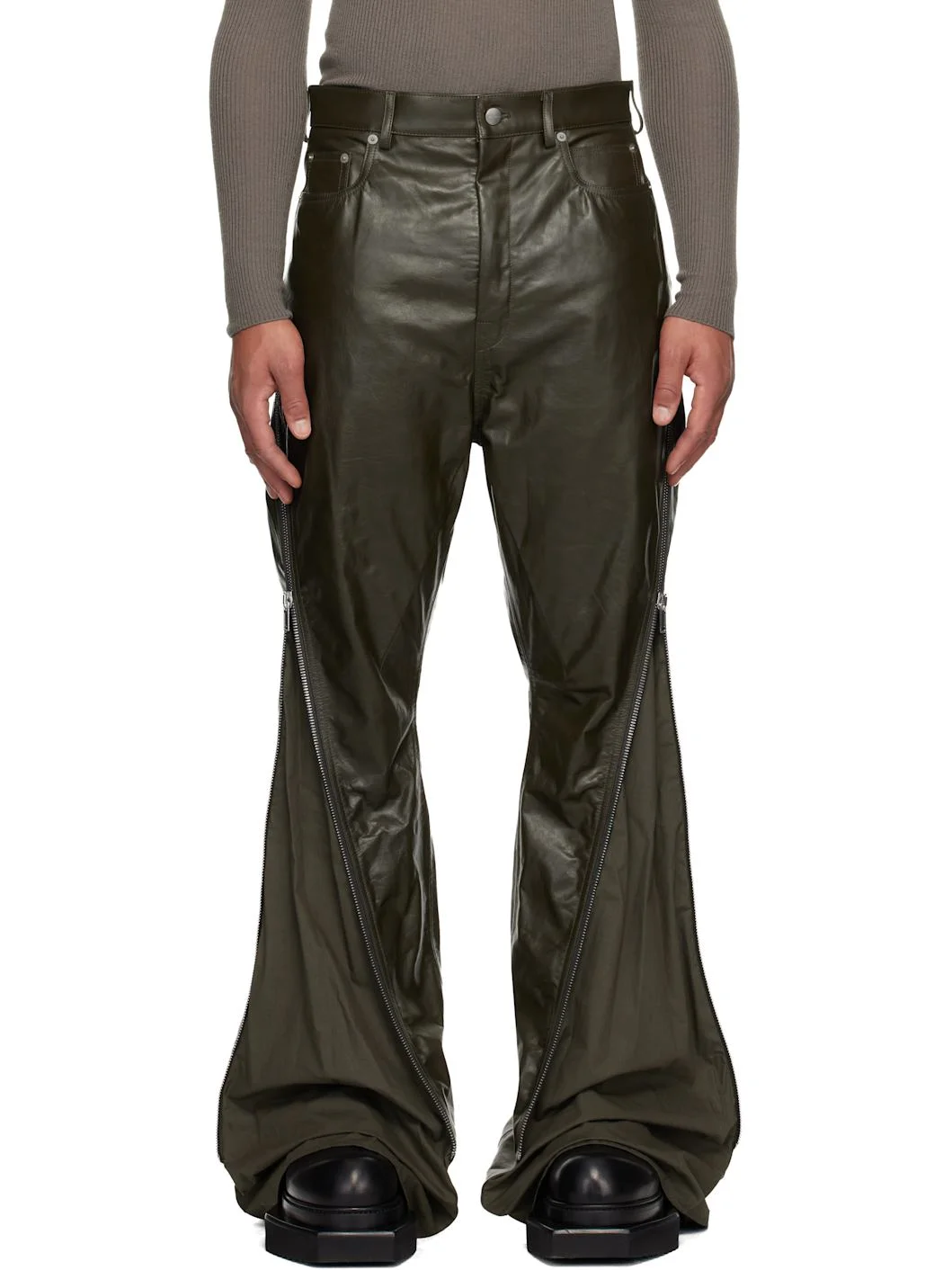 Khaki Concordians Bolan Banana Leather Pants