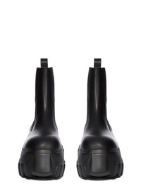 RICK OWENS FW25 CONCORDIANS BEATLE MEGA TRACTOR IN BLACK WASHED CALF LEATHER THESE BEATLE MEGA TRACTORS ARE ABOVE-ANKLE HEIGHT. THEY HAVE GEOMETRIC SIDE PANELS IN STRETCH ELASTIC, AN ANGULAR HEEL COUNTER WITH TOP STITCHING, A BACK LOOP PULL TAB AND A ROUNDED BOZO TOE. THEY FEATURE A DOUBLE HEIGHT MEGA TRACTOR SOLE THIS MEDIUMWEIGHT COW LEATHER IS VEG TANNED AND FINISHED USING NATURAL WAXES. A FINAL WASH GIVES THIS LEATHER ITS SOFTNESS AND BRINGS OUT THE NATURAL GRAIN TEXTURE OF EACH SKIN. BECAUSE THIS SKIN IS NAKED, NOT FINISHED USING ANY PIGMENTS COVERING THE SKIN, NATURAL MARKINGS AND SHADINGS ARE VISIBLE WHICH MAKES EACH SKIN AND PRODUCT UNIQUE VEG TANNING MEANS ONLY VEGETAL AND NATURAL TANNINS WERE USED IN THE PROCESS OF TANNING AND PRESERVING THIS LEATHER THIS TANNERY IS LWG CERTIFIED WITH A SILVER RATING COLOR: BLACK MATERIAL: UPPER 100% CALF LEATHER LINING 100% CALF LEATHER INSOLE 100% CALF LEATHER SOLE 100% E.V.A SOLE AT HEEL 9CM - SOLE AT TOE 6CM