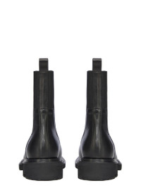 RICK OWENS SS26 TEMPLE BEATLE GABE IN BLACK WASHED CALF LEATHER THESE BEATLE GABE ARE ABOVE-ANKLE HEIGHT. THEY HAVE GEOMETRIC SIDE PANELS IN STRETCH ELASTIC, A LOW ANGULAR HEEL COUNTER WITH TOP STITCHING AND A BACK LOOP PULL TAB. THEY HAVE A ROUNDED TOE AND FEATURE A RUBBER CREEPER SOLE WITH A TOOTHED SQUARE HEEL. THIS MEDIUMWEIGHT CALF LEATHER IS VEG TANNED AND FINISHED USING NATURAL WAXES. A FINAL WASH GIVES THIS LEATHER ITS SOFTNESS AND BRINGS OUT THE NATURAL GRAIN TEXTURE OF EACH SKIN. BECAUSE THIS SKIN IS NAKED, NOT FINISHED USING ANY PIGMENTS COVERING THE SKIN, NATURAL MARKINGS AND SHADINGS ARE VISIBLE WHICH MAKES EACH SKIN AND PRODUCT UNIQUE. VEG TANNING MEANS ONLY VEGETAL AND NATURAL TANNINS WERE USED IN THE PROCESS OF TANNING AND PRESERVING THIS LEATHER. THIS TANNERY IS LWG CERTIFIED WITH A SILVER RATING. COLOR: BLACK MATERIAL:UPPER 100% CALF LEATHER LINING 100% CALF LEATHER INSOLE 100% CALF LEATHER INTERSOLE 100% COW LEATHER SOLE 100% E.V.A SOLE AT TOE 2CM AT HEEL 4CM