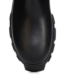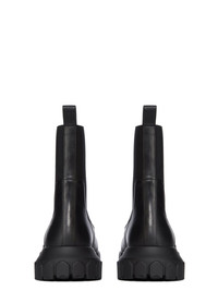 RICK OWENS FW25 CONCORDIANS BEATLE BOZO TRACTOR IN BLACK/BLACK GROPPONE COW LEATHER THESE BEATLE BOZO TRACTORS ARE ABOVE-ANKLE HEIGHT. THEY HAVE GEOMETRIC SIDE PANELS IN STRETCH ELASTIC, AN ANGULAR HEEL COUNTER WITH TOP STITCHING, A BACK LOOP PULL TAB AND A ROUNDED BOZO TOE. THEY FEATURE A TRACTOR SOLE THIS HEAVYWEIGHT COW LEATHER IS VEG TANNED AND FINISHED USING NATURAL WAXES. BECAUSE THIS SKIN IS NAKED, NOT FINISHED USING ANY PIGMENTS COVERING THE SKIN, NATURAL MARKINGS AND SHADINGS ARE VISIBLE WHICH MAKES EACH SKIN AND PRODUCT UNIQUE VEG TANNING MEANS ONLY VEGETAL AND NATURAL TANNINS WERE USED IN THE PROCESS OF TANNING AND PRESERVING THIS LEATHER THIS TANNERY IS LWG CERTIFIED WITH A GOLD RATING COLOR: BLACK/BLACK MATERIAL: UPPER 100% COW LEATHER LINING 100% CALF LEATHER INSOLE 100% CALF LEATHER SOLE 100% THERMOPLASTIC POLYURETHANE SOLE AT TOE 3CM - AT HEEL 5CM