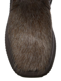 RICK OWENS FW25 CONCORDIANS RUNWAY FACTORY BOOTS IN INDIGO MELANGE UNSHAVED COW LEATHER THESE FACTORY BOOTS ARE MID-CALF HEIGHT. THEY HAVE A TOPSTITCHED SEAM ARCING OVER THE FRONT FOOT WITH STITCHING RUNNING OVER THE ANTERIOR ANKLE. THEY FEATURE AN ANGULAR HEEL COUNTER AND A BACK LOOP PULL TAB AND HAVE 14CM HIGH SHARK-TOOTH SOLE UNDERNEATH AND AT FRONT AND HAVE A SLANTING HEEL AND INCLINED TOE PLATFORM THIS HEAVYWEIGHT LEATHER IS A HAIR-ON COWHIDE WITH NATURAL LENGTH COARSE HAIR. IT HAS BEEN TREATED WITH A CORROSION TREATMENT WHICH CREATES AN IRREGULAR INDIGO AND BROWN MELANGE COLORATION THIS LEATHER IS TANNED IN THE VENETO AREA OF ITALY BY A TANNERY SPECIALIZED IN HAIR-ON COW LEATHER. BECAUSE THE HAIR IS NATURAL THERE CAN BE INCONSISTENCY IN THE LENGTH DIRECTION, TEXTURE AND COLOR THIS TANNERY IS LWG CERTIFIED WITH A SILVER RATING COLOR: INDIGO MATERIAL: UPPER 100% COW REAL FUR LINING 100% CALF LEATHER INSOLE 100% CALF LEATHER PLATFORM AT HEEL 14CM PLATFORM AT TOE 7CM
