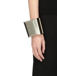RICK OWENS PERFORMA CUFF IN ALUMINIUM THIS LARGE PERFORMA CUFF IS A RIGID METAL BRACELET WITH BEVELED EDGES AND A MAGNET CLOSURE. IT HAS THE RICK OWENS LOGO ENGRAVED ON THE TOP SIDE THESE JEWELRY PIECES ARE CRAFTED WITH THE INDIVIDUAL HANDWORK OF THE ARTISAN, MAKING EACH PIECE UNIQUE - COLOR: PALLADIO - MATERIAL: 100% BRASS