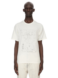 RICK OWENS SS26 TEMPLE BRAD T IN BLACK/MILK CLASSIC COTTON JERSEY THIS BRAD T IS BELOW-HIP LENGTH WITH SHORT SLEEVES. IT HAS A CLASSIC SQUARE CUT, A RIBBED ROUND NECK, AND LEVEL SHOULDER SEAMS. IT FEATURES THE SIGNATURE SINGLE SEAM RUNNING DOWN THE CENTER BACK SPINE. THIS MEDIUMWEIGHT CLASSIC COTTON JERSEY IS COMPACT WITH A DRY HANDFEEL. THIS JERSEY IS MADE USING GOTS CERTIFIED ORGANIC COTTON WHICH MEANS THE NATURAL FIBER IS GROWN WITHOUT HARMFUL CHEMICALS, LEAVING OUR SOIL, AIR AND WATER CLEANER FROM CONTAMINATES. WE STRIVE TO KEEP OUR PRODUCTION AS LOCAL AS POSSIBLE. THE FULL MANUFATURING CYCLE OF THIS PRODUCT, FROM THE MATERIAL KNITTING TO SEWING AND FINISHING, WAS UNDERTAKEN CLOSE TO OUR HOME BASE IN CONCORDIA, ITALY. COLOR: BLACK/MILK MATERIAL:100% COTTON MODEL IS 189CM TALL MODEL WEARS SIZE S