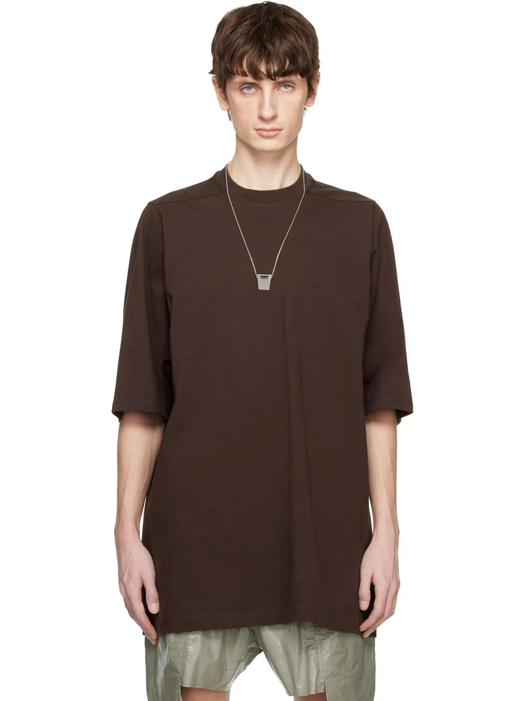 Oversized GOTS-certified organic cotton jersey T-shirt. · Heavyweight · Rib-knit crewneck · Offset shoulder seams · Central seam at back Supplier color: Mahogany 100% organic cotton. Made in Italy 251232M213114