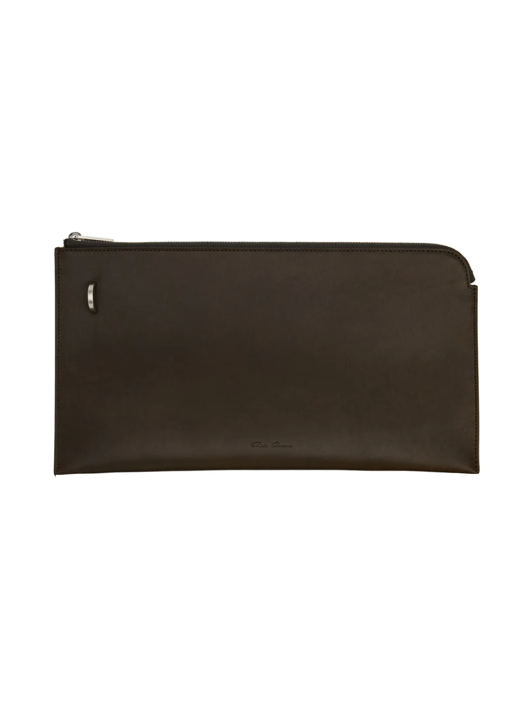 Heavyweight LWG-certified buffed leather wallet in brown. · D-ring and embossed logo at face · Zip closure · Unlined · Logo-engraved silver-tone hardware · H6.5" x W12.5" Supplier color: Bean Leather. Made in Italy 242232M164000