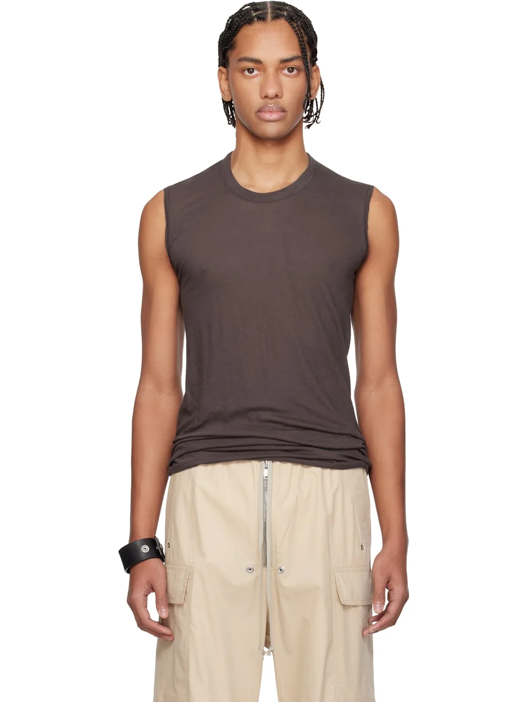 Organic cotton jersey tank top. · GOTS-certified organic cotton · Rib-knit crewneck · Raw edge at hem · Offset central seam at back Supplier color: Macassar 100% cotton. Made in Italy 261232M214020
