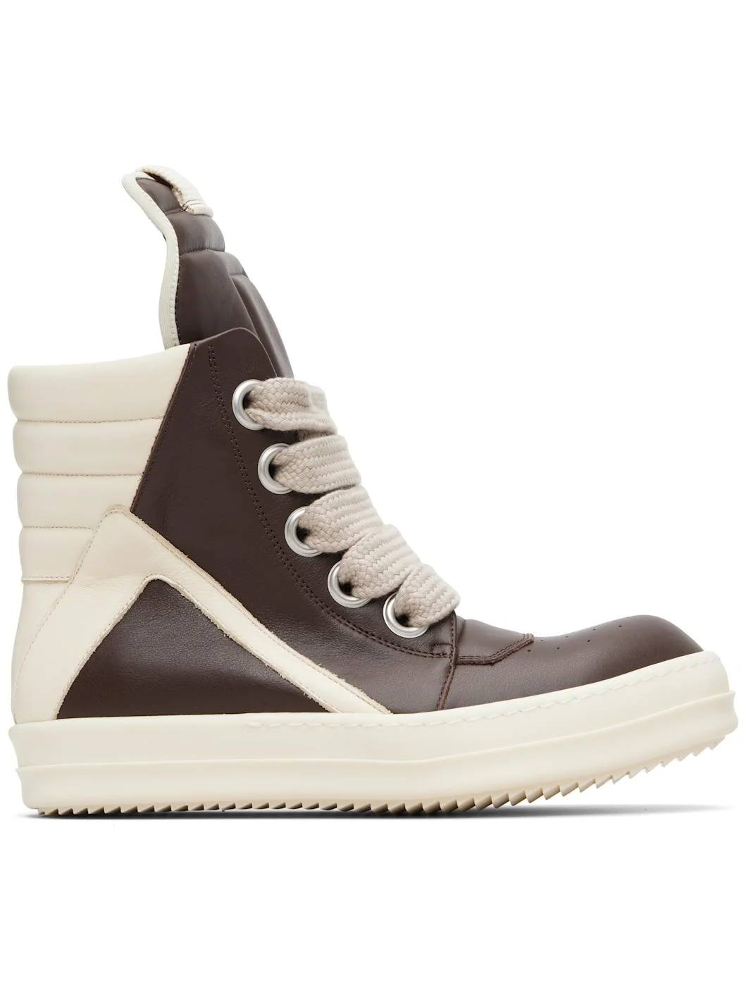High-top buffed leather sneakers. · Perforations at toe · Lace-up closure · Webbing pull-loop at extended padded tongue · Quilted padded collar · Zip closure at inner side · Treaded rubber sole Supplier color: Macassar/Milk/Milk Upper: leather. Sole: rubber. Made in Italy 261232M236012