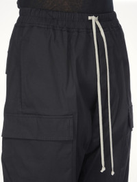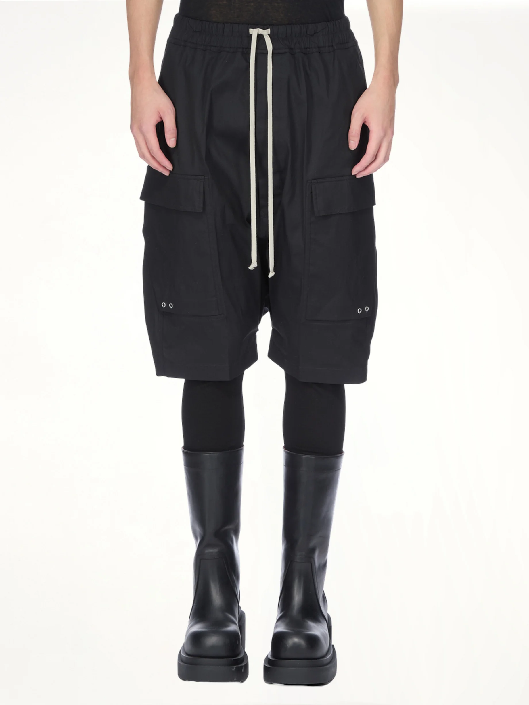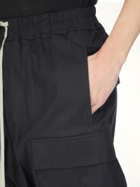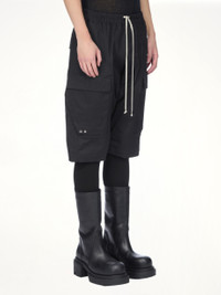 Rick Owens's Cargo Pods in Black is a statement piece that combines avant-garde design with practical functionality. These cargo pods offer a unique silhouette, perfect for those who appreciate bold fashion choices. - Composition: 97%Cotton-3%Elastane- Buttons 100%Buffalo Horn- - Distinctive drop-crotch design - Multiple spacious cargo pockets - Elastic waistband with drawstring for adjustable fit - Relaxed, oversized fit for comfort - Signature Rick Owens aesthetic SKU: RU02E1389 TE 09