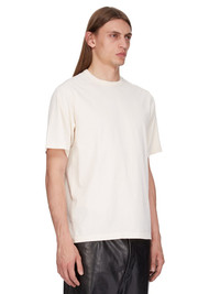 RICK OWENS SS25 HOLLYWOOD BRAD T IN NATURAL CLASSIC COTTON JERSEY THIS BRAD T IS BELOW-HIP LENGTH WITH SHORT SLEEVES. IT HAS A CLASSIC SQUARE CUT, A RIBBED ROUND NECK, AND LEVEL SHOULDER SEAMS. IT FEATURES THE SIGNATURE SINGLE SEAM RUNNING DOWN THE CENTER BACK SPINE THIS MEDIUMWEIGHT CLASSIC COTTON JERSEY IS COMPACT WITH A DRY HANDFEEL. THIS JERSEY IS MADE USING GOTS CERTIFIED ORGANIC COTTON WHICH MEANS THE NATURAL FIBER IS GROWN WITHOUT HARMFUL CHEMICALS, LEAVING OUR SOIL, AIR AND WATER CLEANER FROM CONTAMINATES WE STRIVE TO KEEP OUR PRODUCTION AS LOCAL AS POSSIBLE. THE FULL MANUFACTURING CYCLE OF THIS PRODUCT, FROM THE MATERIAL KNITTING TO SEWING AND FINISHING, WAS UNDERTAKEN CLOSE TO OUR HOME BASE IN CONCORDIA, ITALY. COLOR: NATURAL MATERIAL: 100% COTTON MODEL IS 189CM TALL MODEL WEARS SIZE 48